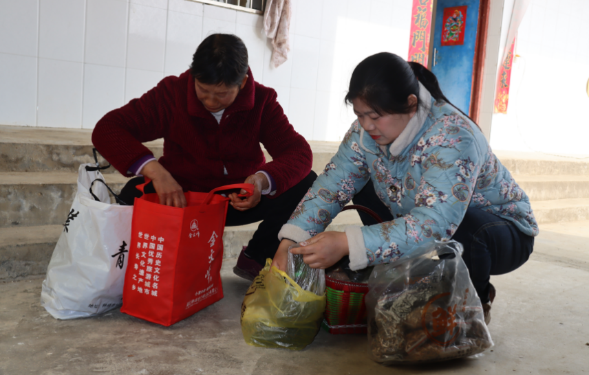 一大早,客店鎮(zhèn)直播達(dá)人“楊村姑”就來到了邵集村十一組,65歲的村民鄒安秀已經(jīng)將家中的特色農(nóng)產(chǎn)品整理打包好,在家門口等待“楊村姑”的到來。